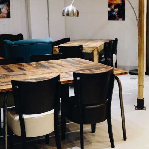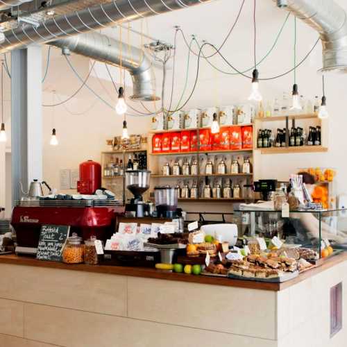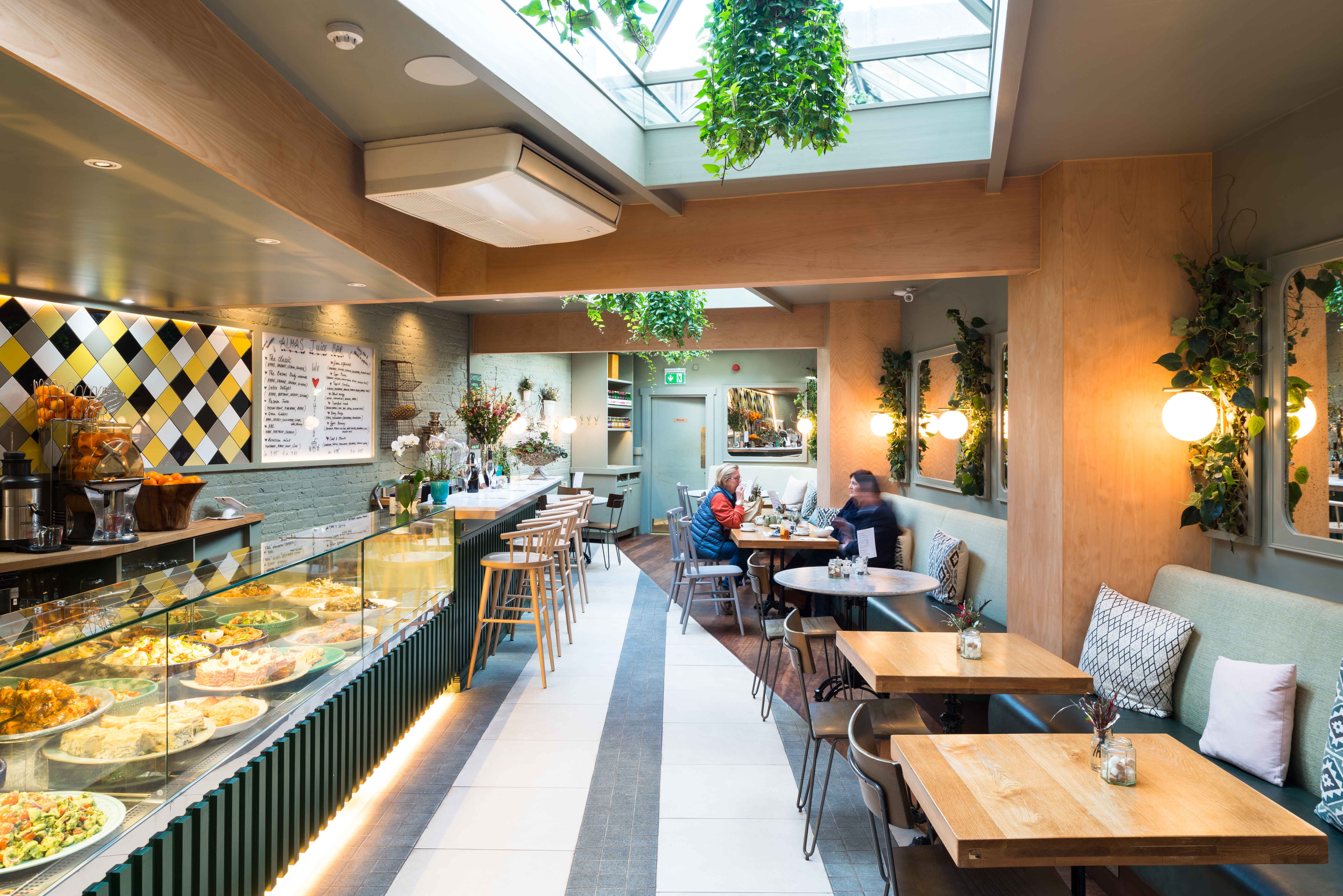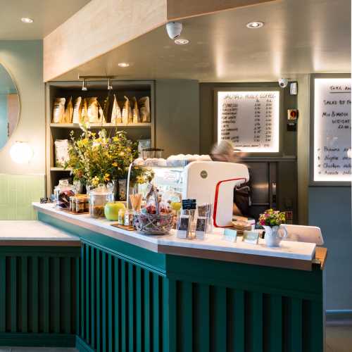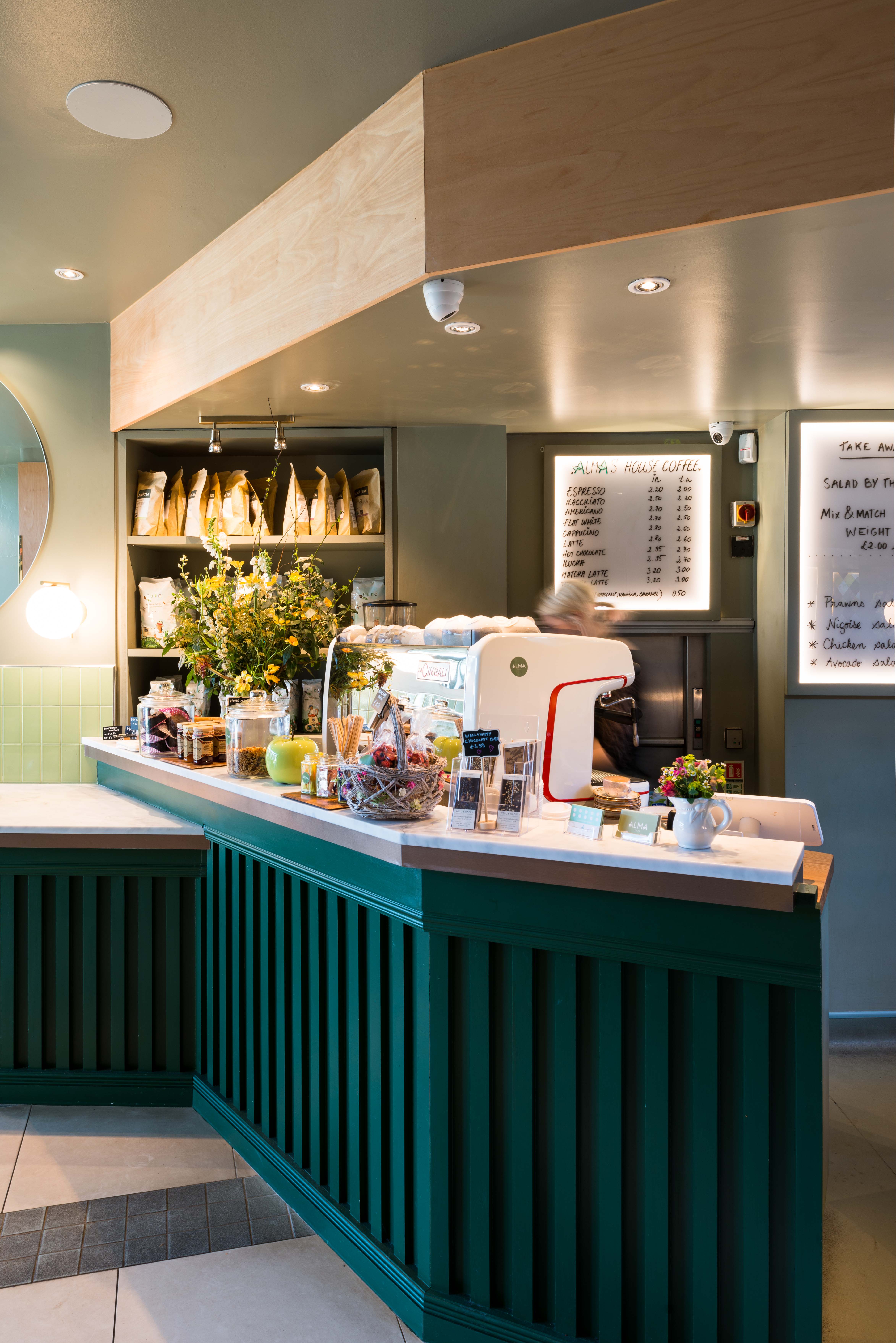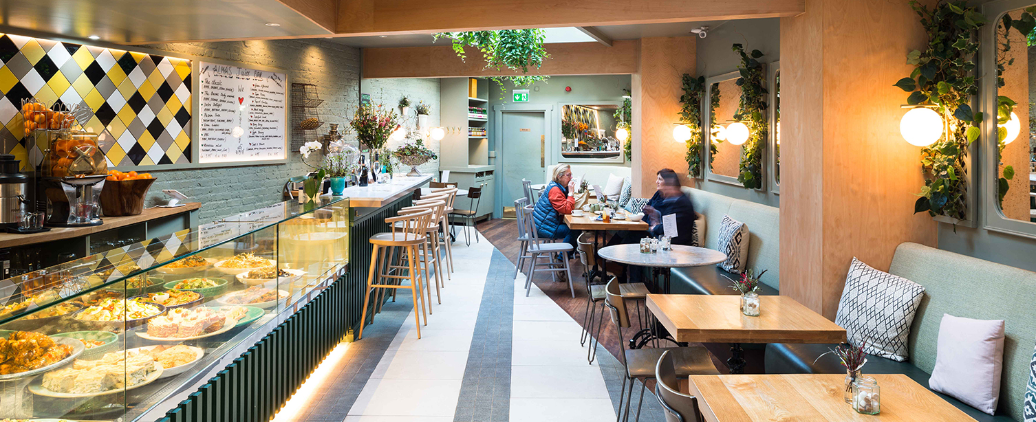 Our highly skilled team delivered exceptional bespoke built in counter and decorative features to accompany the interior design: hand made reclaimed wood dining table, storage cabinets and display units, which finished the look of the café to the precise requirements.