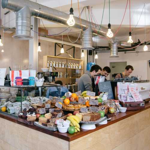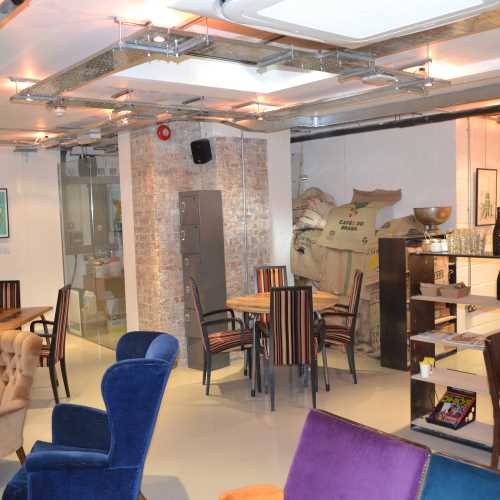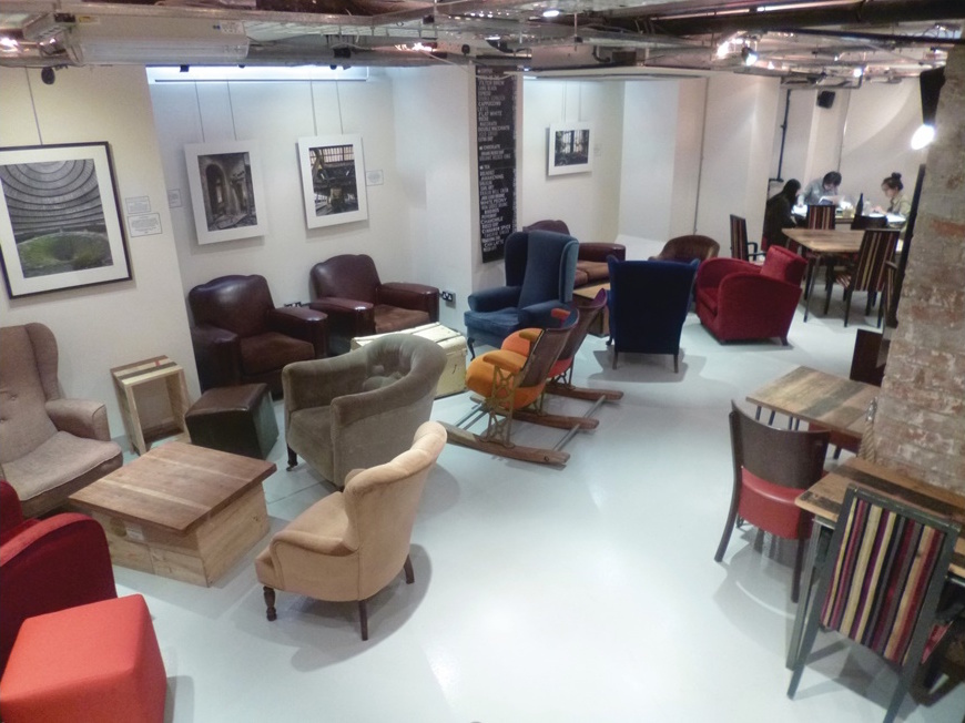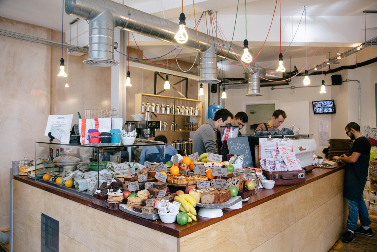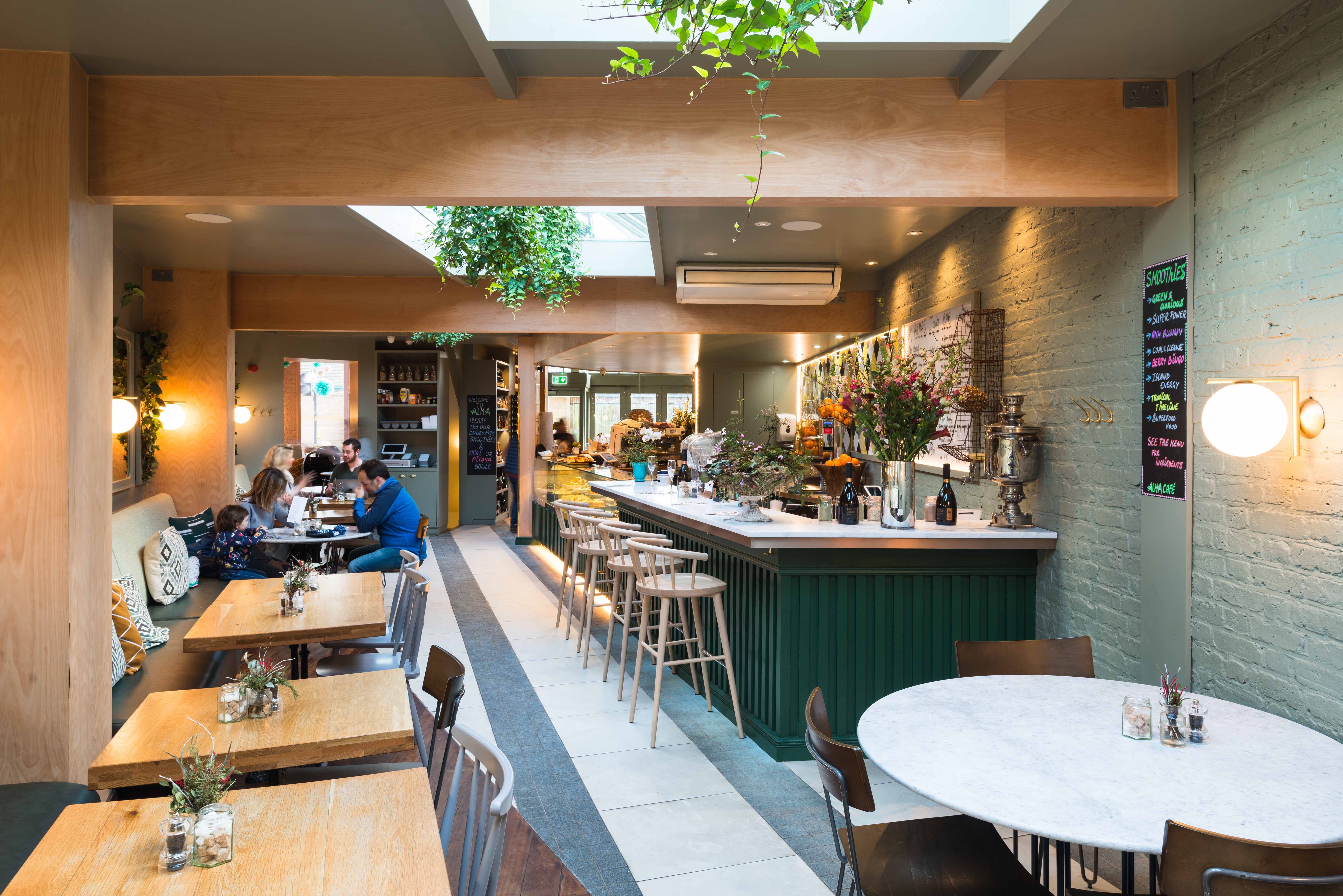 Adding to the uniqueness of the design, N&N Building & Decorating Services Ltd came up with and created a bespoke counter that featured prominently in the ground floor; making it one of the cafe’s most outstanding features. The facade of the cafe was fully restored and made to measure shop front panels were put in place to allow natural light to come through.