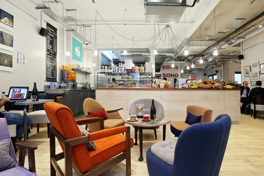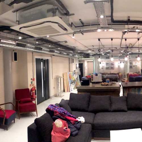 A stylish coffee shop, renovated and refurbished from what was previously a hairdressing and beauty salon. This shop consisted of ground and basement sections, which we stripped and fully refurbished, giving the cafe a spacious open plan room space. Cable trays with lighting and an industrial look air-conditioning system were installed and left in view on the ceiling. Those together with exposed brick walls, and resin flooring thought out the basement, give the cafe a modern, loft style look. The basement ceiling also benefitted of a walk-on glass panel to allow natural light coming through.