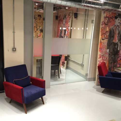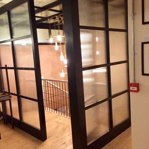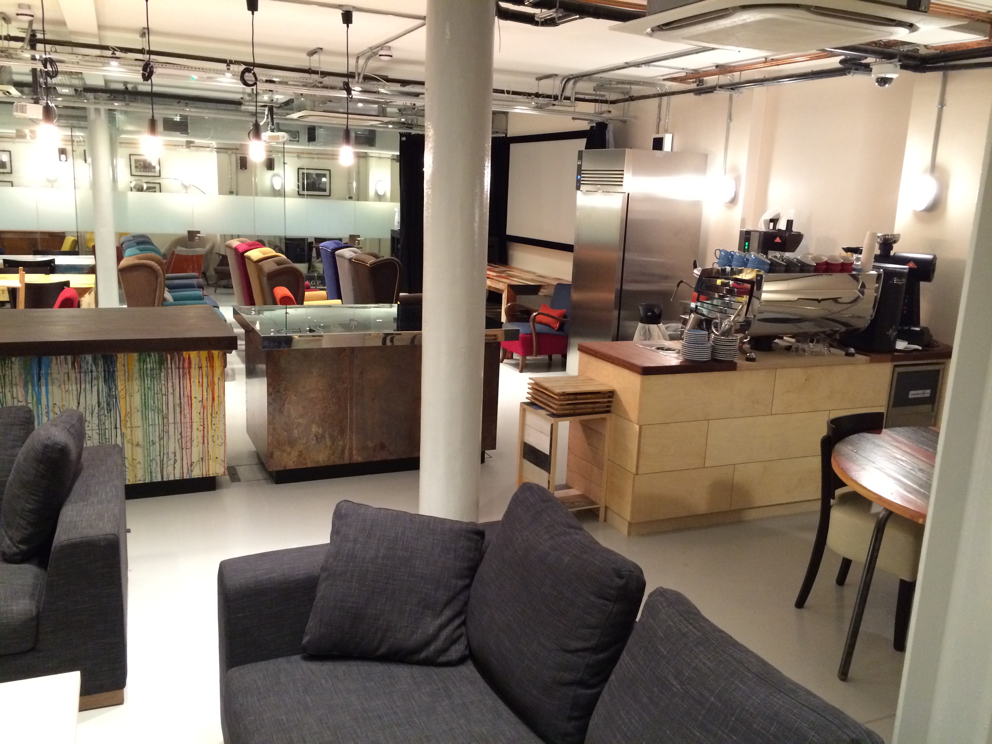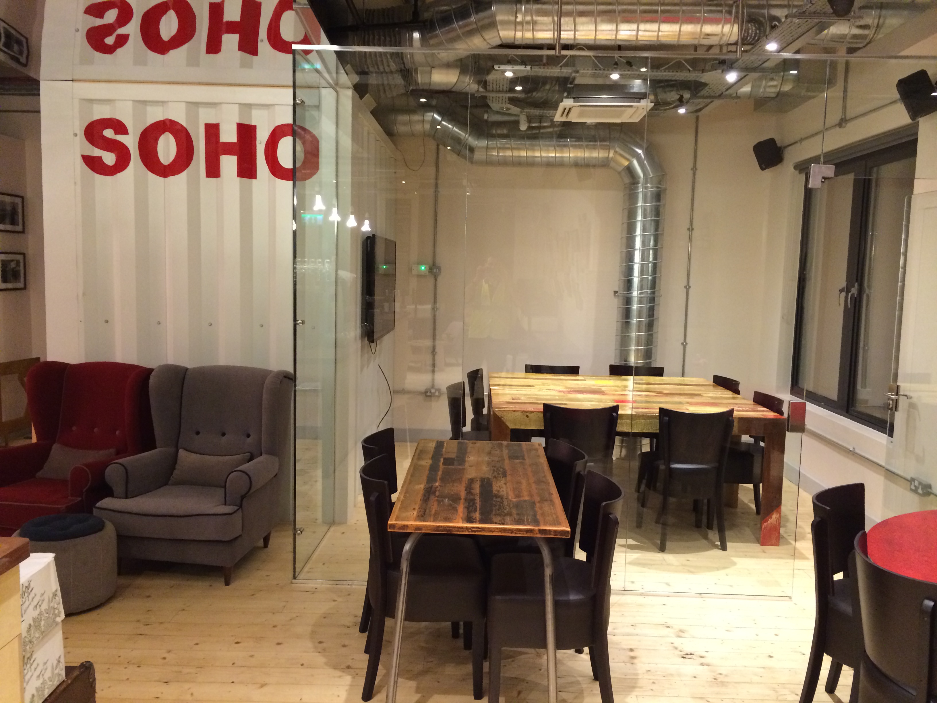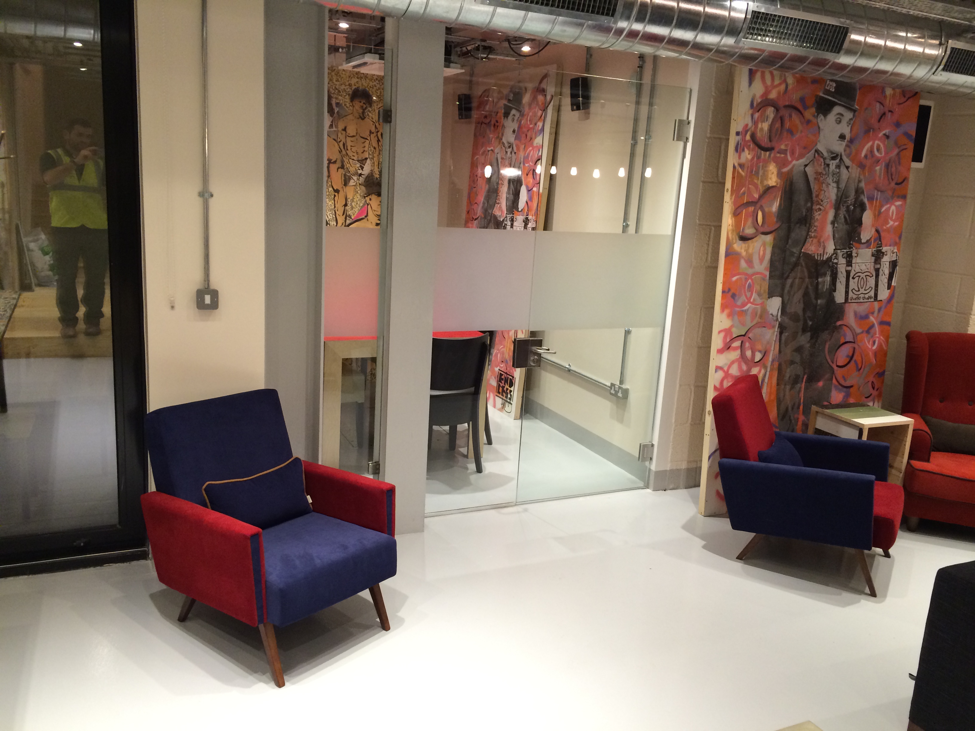 In what resembles a shipping container, loft style lighting, an air-conditioning system and glass meeting rooms giving the place a sense and look of a piece of modern art. The trendy ideas were continued into creating the bespoke large counter, a glass box at the top of the made to measure staircase, and open plan structural features in open plan design, settling very nicely into the space, shape and style required.